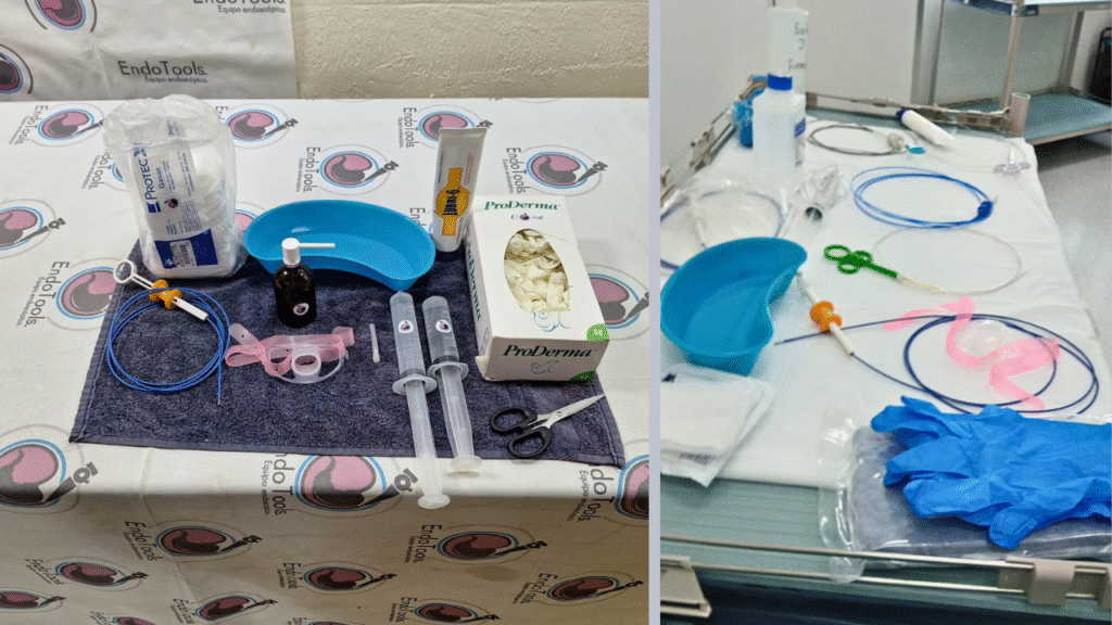 - Accesorios listos: esfinterotomo , guías, Protesis, etc.